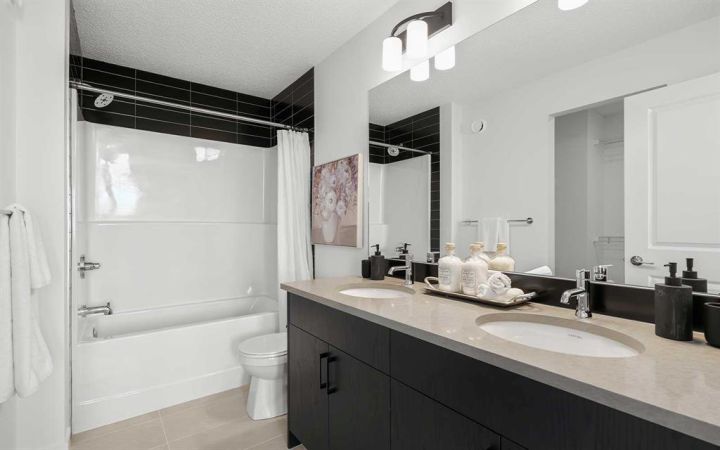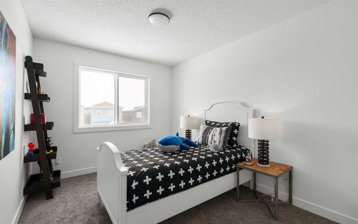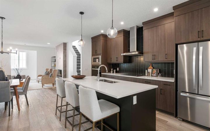 The beautiful new 'Portland' model by Brookfield Residential offers 1,900 square feet of living space + a legal 2 bedroom basement suite. Situated in the heart of Calgary's newest community, Starling, this brand new home features 2 living areas, a home office/flex space on the main level, 3 bedrooms, 2.5 bathrooms and a fully legal 2 bedroom basement suite that is accessed by its own private entrance! The expansive great room at the front of the home has a wall of west-facing windows allowing for natural light to flow through the main level all evening long. The central kitchen is complete with a suite of stainless steel appliances including a chimney hood fan and built-in microwave, a large island with additional seating space and a full walk-in pantry with ample storage space. The kitchen opens to both the living and dining areas - offering an open concept design that is ideal for entertaining. Located at the back of the home is a private flex-space, ideal for a home office of children's play space, that overlooks the backyard. Off of the rear entrance is a walk-in coat closet and two piece bathroom, completing the main level. On the upper level, a central bonus room with a window separates the primary suite from the secondary bedrooms and provides the perfect TV room in addition to the main level great room. The primary suite spans nearly 12'x12' and is complete with a large walk-in closet and private ensuite with walk-in shower. Two more bedrooms, a full bathroom and separate laundry room complete the upper level of this home - offering space for a growing family without the compromise of everyday conveniences. The legal 2-bedroom basement suite has its own private entrance and features a central kitchen with peninsula seating, a living room, 2 bedrooms, a full bathroom and laundry + storage space. Completing this home is a fully private backyard with double parking pad. Builder warranty and Alberta New Home Warranty included with this new home. *Please note: Photos are from a show home model and are not an exact representation of the property for sale.