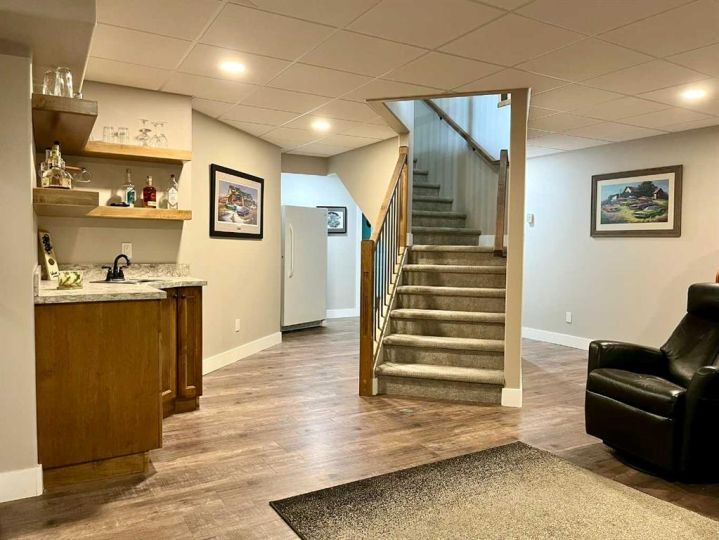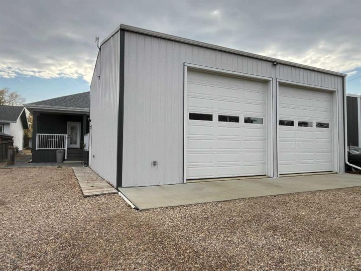 Quality built bungalow with parking and space to tinker for any hobbyist or car enthusiast! This 1366 sq ft home built in 2020 offers 4 bedrooms, 3 bathrooms plus a stunning custom kitchen with stainless steel appliances, luxury vinyl plank flooring and a generous sized living room. An entertainment area downstairs features a wet bar with open shelving, cabinet space plus a large family room for everyone to spread out. This home saw extensive planning and nothing was overlooked- from the spray foam insulation and ICF Block foundation, to triple pane windows, to a built-in ironing board, and built-in jewelry organizer, plus a built-in safe! The ensuite, basement and garage all feature in-floor heat; and stay cool on those hot summer days with central air-conditioning. Ample storage within the home, in the attached double garage, in the 8x12 shed PLUS a 26x34’ detached heated shop in the back with alley access. The shop has 14’ walls, with a mezzanine and 2 piece bathroom. Two overhead 12x12’ doors offer flexible parking for 2 or 3 vehicles and is fully tinned inside with a floor drain, 220 power and an RV plug. Outside, you can enjoy your lawn out front with a nice Trex decking porch; and you can enjoy your maintenance free yard out back with a Trex deck sturdy enough for a hot tub.