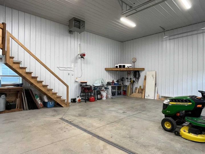 Inclusions: Fridge, Stove, Microhood, Dishwasher, Basement Deep Freeze, Washer, Dryer, Window Coverings, Basement Storage Room Shelves, Primary King Bed with Side Tables (negotiable), Shop Air Compressor, Shop Shelving, Garage and Shop overhead Door Openers and Control(s)