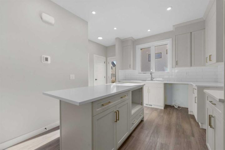 Move-In Ready | The Newport IV | Built by Broadview Homes | 1,380 SqFt | 3 Bed, 2.5 Bath | Top of the Line Finishes | Sparkling Quartz Countertops | Stainless Steel Appliances - Builder's Package | Full Height Cabinets | High Ceilings | Incredible Natural Light | South Facing Backyard | Alley Access | Rear Parking Pad. Welcome to the Newport IV by Broadview Homes — a beautifully designed brand new, move-in ready home offering 1,380 square feet of refined living space with 3 bedrooms and 2.5 bathrooms. Perfectly tailored for modern living, this home combines elegant finishes with functional design in a bright and open layout. The main level features 9’ ceilings that create a spacious, airy feel throughout. A sunlit Great Room welcomes you in and flows seamlessly into the dining nook and stylish kitchen. Thoughtfully designed for both everyday comfort and entertaining, the kitchen showcases a large central island, pot lights, and high-quality cabinetry by Wildwood Cabinets, complete with soft-close doors and drawers. The open-concept layout ensures effortless flow and connection between living spaces. Upstairs, the private primary bedroom offers a peaceful retreat with a walk-in closet and a well-appointed ensuite bathroom. Two additional bedrooms are generously sized and share access to a sleek main bathroom, while the convenient upstairs laundry makes everyday living even more effortless. Crafted with care and quality, this home includes high-efficiency, low-maintenance 100% vinyl windows, an engineered floor system, superior carpet, and a wide selection of luxury vinyl plank flooring and tile in all wet areas. Designed with future potential in mind, this home is also ready for a legal basement suite (subject to city approval). It features a separate side entrance, 9’ basement ceilings, kitchen sink and laundry rough-ins, and a second furnace with HRV system—making it ideal for a mortgage helper or multigenerational living. Located in a desirable new community, this move-in ready home offers an exceptional opportunity to enjoy the quality, style, and peace of mind that comes with owning a brand new Broadview Home. Schedule your private showing today and experience the best of modern living!