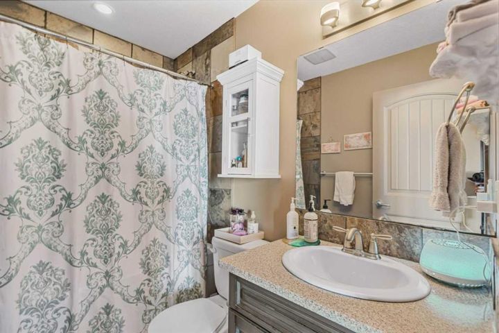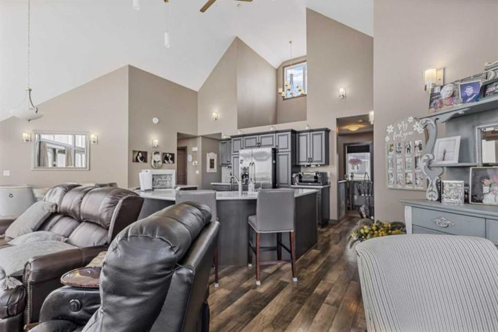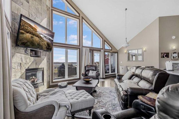 Welcome to 1 Aspen Rise – Where Everyday Feels Like a Getaway! This stunning walkout bungalow offers the kind of lifestyle most only dream about – lake views, groomed trails, peace and privacy, and a home that's been lovingly upgraded for luxury and comfort. Nestled just a short walk from the water and minutes from the golf course, this is a rare opportunity to live where outdoor adventure meets timeless elegance. As you step inside, you're welcomed by soaring vaulted ceilings, a spacious foyer, and a bank of windows that floods the home with natural light and sweeping views of the lake. A striking stone-front fireplace anchors the vaulted living room, creating a cozy yet refined gathering space. The gourmet kitchen is an entertainer’s dream — featuring quartz countertops, a large sit-up island, high-end cabinetry, and seamless flow into the open dining and living areas. Whether you're whipping up dinner or sipping coffee at sunrise, the backdrop is always breathtaking. The main floor boasts a luxurious primary suite with incredible lake views, a large walk-in closet, and a 4-piece spa-style ensuite with a soaker tub and separate shower. A second bedroom (also with lake views), another full bath with its own soaker tub, and main floor laundry complete this level. Downstairs, the walkout basement offers two more oversized bedrooms with walk-in closets, a bright and expansive family room perfect for movie nights or home workouts, and a custom 3-piece bathroom featuring a Kerdi shower system. Need storage? You’ll love the bonus space under the stairs — fully standable and ready for your gear. Outside is where this property truly shines, shingles and siding replaced in 2017. Well pump was replaced 2 years ago. The previous owner was a professional landscaper, and it shows! Perennials, rose bushes, lilacs, and a living spruce fence frame the property boundaries beautifully. Add to that a charming pergola with custom stone flooring, a firepit area, sunrise/sunset views, and custom Purple Martin birdhouses with a winter-lowering crank system — and you've got your own slice of paradise.