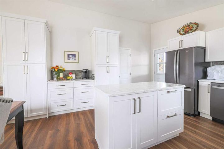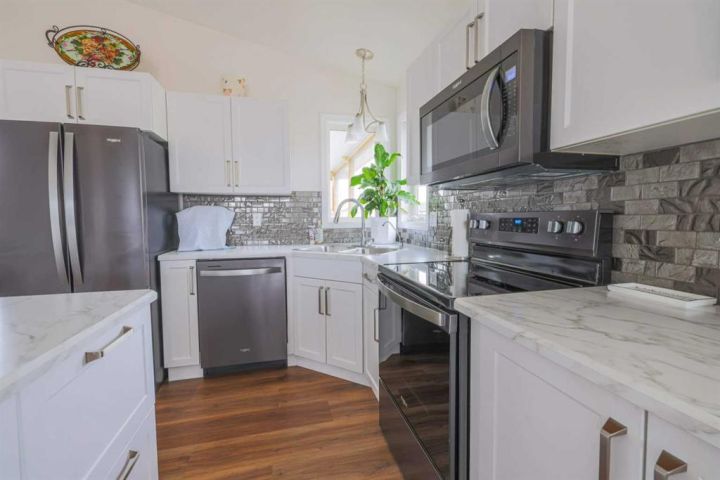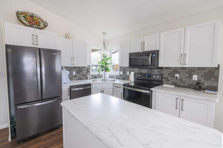 Step into modern comfort with this beautifully updated 4 bedroom bi-level home that blends style, functionality, and thoughtful upgrades throughout. Every inch of this residence has been refreshed to offer a like-new living experience with nothing to do but move in and enjoy. New flooring, paint, and lighting throughout for a fresh and present day feel. Upgraded kitchen featuring some brand new cabinetry, all new doors fronts and hard ware, a spacious island, sleek countertops, and a stylish new faucet. New appliances included and ready for your culinary adventures, drinking water filtration system installed for clean, crisp water right from the tap. Bright and spacious dinning area and living room are ideal for entertaining family and guests. Family room offers a secondary living space for gatherings, game night, relaxation or a cozy movie night. New hot water boiler installed in 2023 is efficient and reliable. Garage door has been heightened and a new garage door installed. New radiant garage heater installed in 2024 keeping your workspace warm all winter. A covered and screened in deck will extend your outdoor season and keep you bug free. Greenhouse and garden shed are perfect for hobby gardeners and plant lovers to enjoy the dedicated garden area with 3 raised garden beds. The bonus of a Shade House give additional space for entertaining or a quiet retreat. The fenced back yard provides a safe and private space for family and pets along with ample room for your recreational vehicle, RV or extra parking. This home offers the perfect blend of modern upgrades, practical outdoor amenities in the setting of a quiet and welcoming cul-de-sac of the Creek Side community, perfect for families, gardeners, and anyone who loves comfortable indoor and outdoor living just steps away from parks, playgrounds, and walking trails. Please note should you not wish to have any of the outbuilds the seller can have them removed.