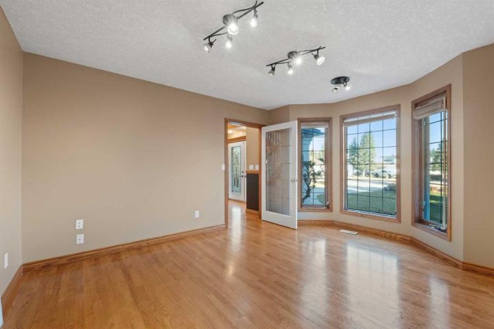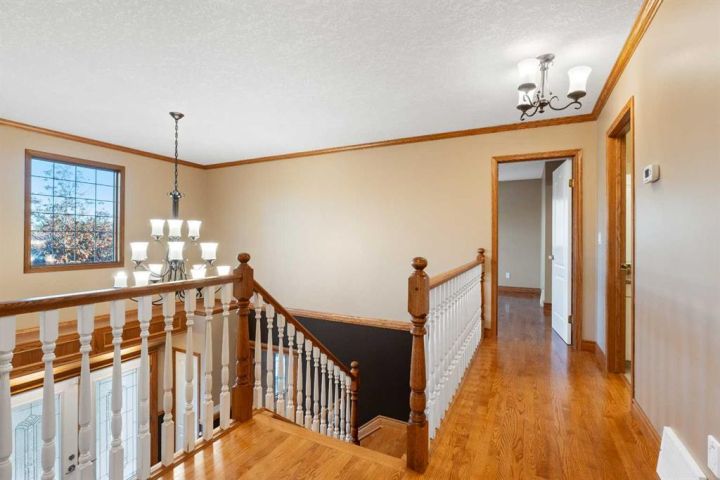 Step through the grand front entrance into a warm and welcoming space where craftsmanship meets comfort. The main level offers a front office or den, a large formal dining room, and an open kitchen with a breakfast area overlooking the private backyard. The adjoining living room is bright and inviting—perfect for gathering with family or entertaining friends. A convenient 2-piece bath sits near the side entry and heated garage, along with a full laundry room down the hall.