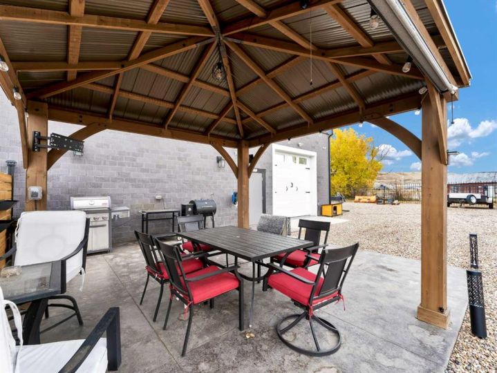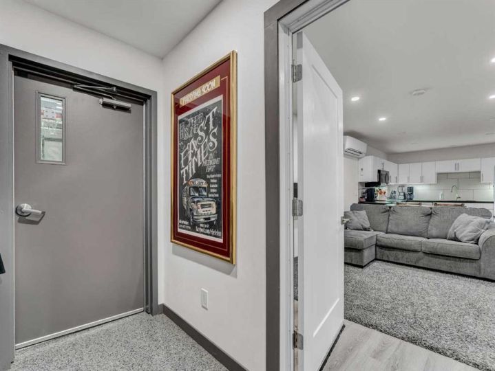 This one-of-a-kind property offers the perfect blend of functionality and comfort with a fully finished mixed-use shop and modern living quarters, ideal for business owners, hobbyists, or those seeking a versatile live-work space. The residential suite features 2 bedrooms, a comfortable living room, a full kitchen, a 4-piece bathroom, and in-suite laundry. Thoughtfully designed and beautifully finished, this space offers all the comforts of home within a highly functional property. The shop area includes three full bays, with one bay converted to include an additional sleeping space with a Murphy bed and a washroom. Heating is provided by boiler baseboard heaters and an overhead radiant heater, with a 240V plug inside the shop and an outside RV plug for added convenience. The fully fenced yard is secured by custom wrought iron gates with 20’ openings and includes a 20x30 canvas storage shed. A full concrete driveway, rocked entry points and yard, with a stamped concrete patio complete the exterior. Extensive upgrades and additions completed in 2022 and 2023 include: New windows, hot water tank, and living addition, Wi-Fi Ecobee thermostats and MyQ garage door openers, Polyurethane epoxy floors and LED lighting throughout, Updated electrical and plumbing, Murphy bed installation in shop bay, Lorex 8-camera security system with 50” monitor and Aosu video doorbell, with finger printed locks, AC/heat split unit, Gemstone exterior lighting, and metal roof with insulation. Additional features include Park Enterprises inspection sign-off for the development permit and flexible heating options: split unit and boiler baseboard in the living area, boiler baseboard and overhead radiant heat in the shop. This unique property offers unmatched versatility with a combination of premium shop space and comfortable living quarters, all on a secure and well-equipped lot.