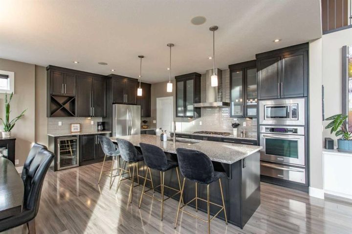 The fully finished walkout basement expands your living space with a large family room, wet bar with stainless dishwasher and wine fridge, built-in speakers, two bedrooms, a 4-piece bath, and a flex/storage room that could make the perfect future wine room.