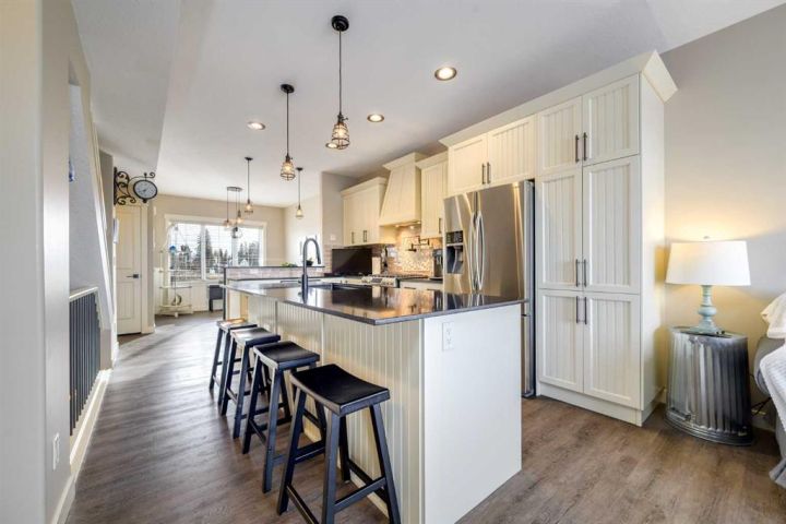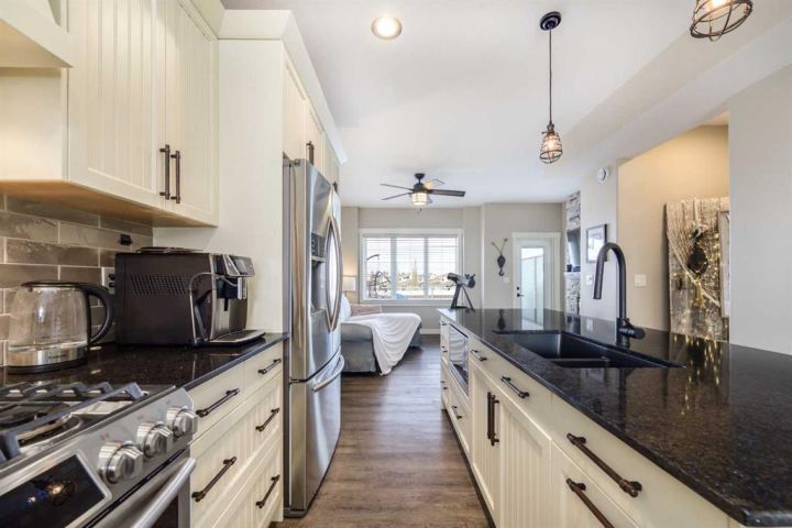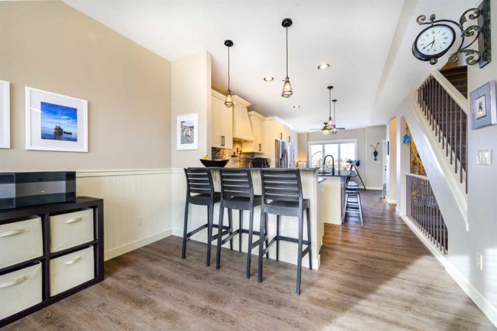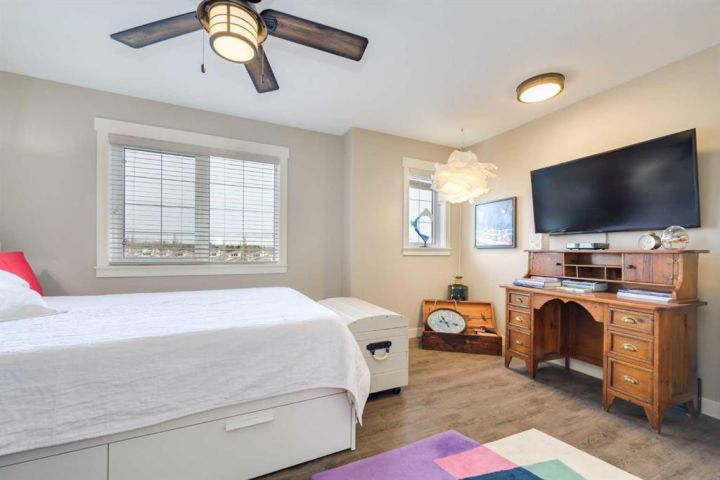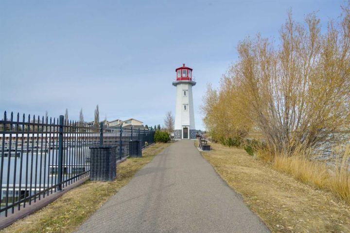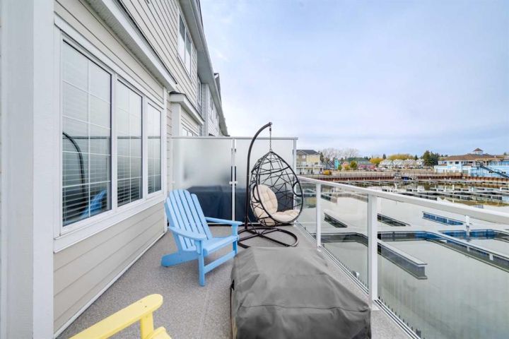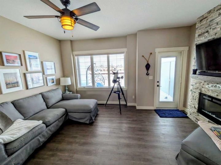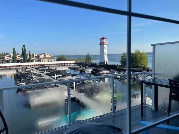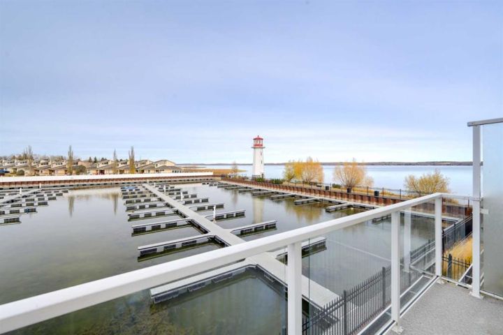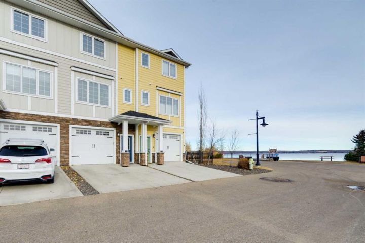 AFFORDABLE WATERS EDGE CONDO with reasonable low condo fees of $335/month ! Treat your eyes with beautiful lake front living at its finest, with stunning VIEWS TO WAKE UP TO and all day long plus into the night. ONLY ONE UNIT AWAY FROM THE LIGHTHOUSE PROMENADE right on the lake and the marina and next to Friday FARMERS MARKET! This fabulous 3 bedroom 4 bathroom townhome with 9' HIGH CEILINGS and attached GARAGE/FAMILY ROOM is located right on the WATERS EDGE MARINA in Sylvan Lake. Enjoy the PLEASANT MORNING VIEWS and SUNSETS from the large upper deck and lower patio and WHILE LAYING IN BED.! This amazing GATED COMMUNITY property is just steps from all DOWNTOWN RESTAURANTS AND SHOPPING. There is a public park and beach area just steps from the front door, with the main beach and pier only a block away. The main floor consists of a heated single garage/family room with convenient 2 piece bathroom, a flex room (BEDROOM/GYM/den/office/bedroom/craft room) (this one bedroom/bath can also be used as a separate suite with it's own entrance), large storage closet, EPOXY GARAGE FLOOR finishing, and a rear access door to a covered concrete patio overlooking the Marina. The second floor is gorgeous with an abundance of natural light streaming through the windows that overlook the lake, finished in vinyl plank flooring,-ideal for lakeside living. The kitchen has ample cabinet and counter space-finished with QUARTZ COUNTER TOPS, soft close cabinets and stainless steel appliances (including a GAS STOVE with double oven) and REVERSE OSMOSIS drinking tap. Cozy up in the living room after a day on the lake in front of the inviting electric FIREPLACE, or enjoy the panoramic views from the large upper deck accessed from the the living room. Upstairs you will find two good sized bedrooms including a primary suite (with lake views right from your bed), a walk-in closet and a 5 piece ensuite, a second bedroom, a 4 piece main bathroom, and top floor LAUNDRY with washer/dryer completing the upper floor. CENTRAL AIR CONDITIONING will keep you cool on those warm summer days. Other great features include central vac roughed in, natural gas line to the upper and lower decks. WAKE UP HAPPY to be in such a paradise...one of the most affordable options for living right on the water currently listed for WELL UNDER 2025 Appraised value and Municipal Assessment (attached in documents) -SHORT TERM and long term rentals are allowed.