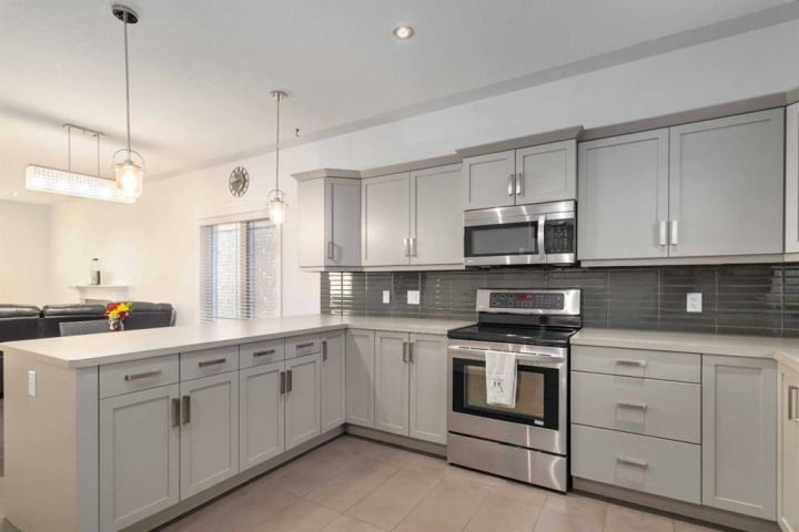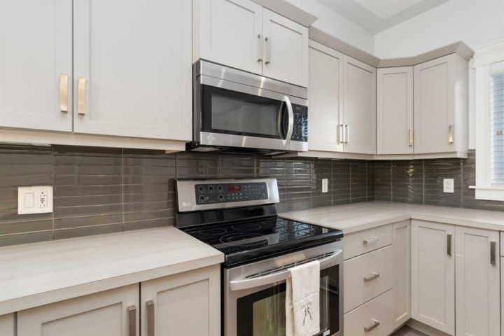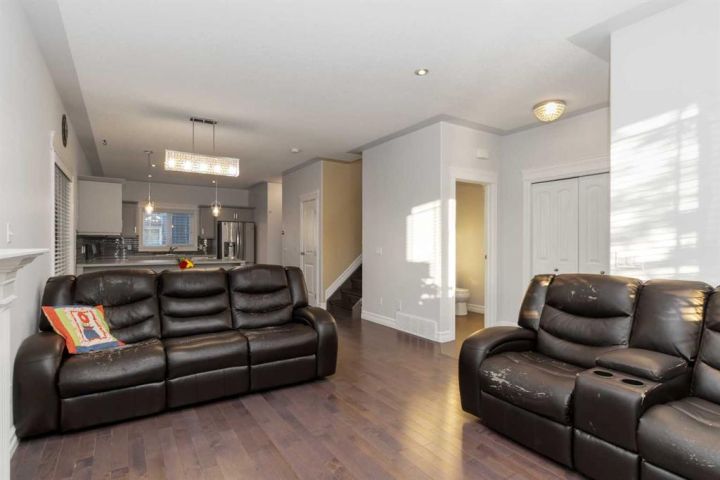 Step inside and immediately feel at home with the open-concept main floor and 9 ft ceilings that create an airy, welcoming feel. Morning sun streams in through the front windows, filling the space with natural light, while the living room’s gas fireplace adds just the right touch of warmth, making it a cozy place to unwind at the end of the day. The kitchen is both stylish and functional, featuring stainless steel appliances, a pantry, and plenty of counter space. There’s room for both a dining table and bar stools at the counter - perfect for family dinners, morning coffee, or casual get-togethers with friends. Thoughtfully positioned, the main floor laundry adds convenience while complementing the open, welcoming layout.