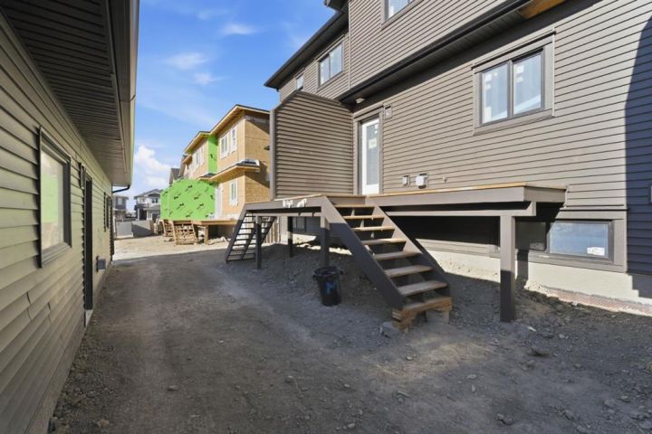 Welcome to this inviting 3-bedroom townhome nestled in the heart of Lanark Landing—a thoughtfully planned community known for its welcoming atmosphere and green spaces. From your front door, step down into your private front yard and directly onto the adjoining green space, offering a peaceful setting for morning walks, outdoor play, or quiet reflection. The main level boasts a bright and open-concept living room, a well-defined dining area perfect for hosting, a convenient laundry room, and a stylish half bathroom. Upstairs, discover three spacious bedrooms including a tranquil primary retreat with its own 3-piece ensuite, a full 3-piece main bathroom, and a flexible bonus room ideal for a home office, playroom, or cozy media nook. Outside, enjoy warm evenings on your backyard deck, take advantage of the double detached garage with rear lane access, and appreciate the elegant touch of the decorative black iron front fence that enhances the home’s curb appeal. With its smart layout, modern finishes, and unbeatable location, this townhome offers a harmonious blend of comfort, style, and community living.