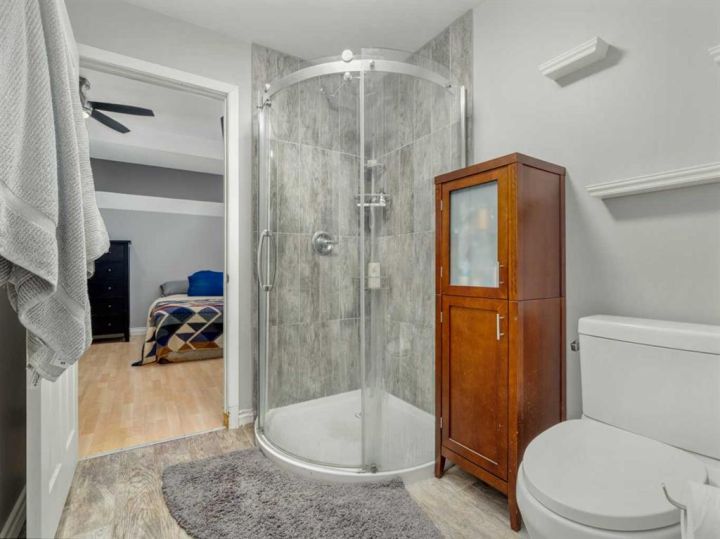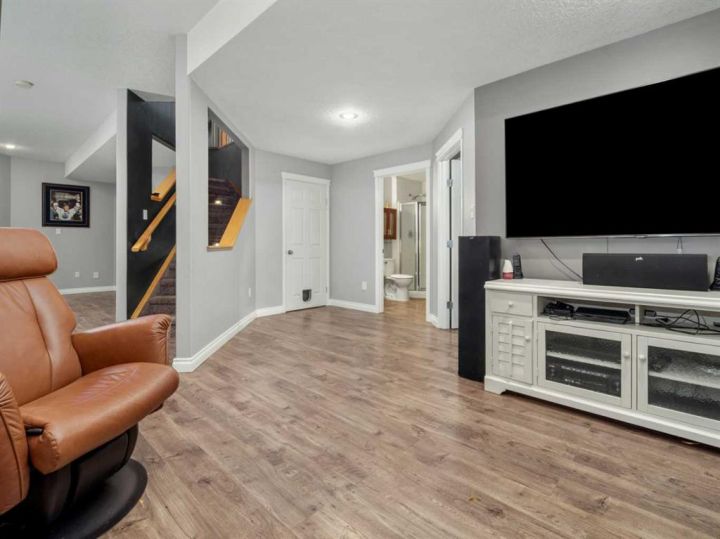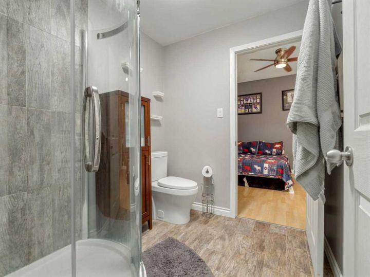That back deck is heated, giving you a cozy year-round space to relax. Downstairs, you’ll find a huge family room, three additional bedrooms two of which are connected by a Jack-and-Jill bathroom, and in-floor heating throughout both the basement and the garage. If you’re ready for a home that brings comfort, space, and small-town charm together, call your favourite REALTOR® and come see it for yourself.