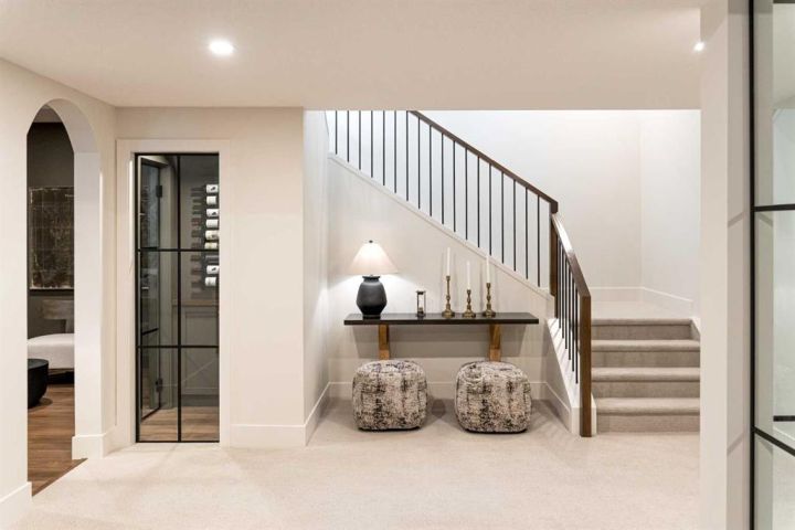 Outside, smooth acrylic stucco or cement board siding pairs with natural stone or brick accents for a timeless curb appeal. Energy efficiency comes standard, with triple-pane LoE windows, a Lennox variable-speed high-efficiency furnace, HRV system, power-drip humidifier, LED lighting, and a 72-gallon hot water tank with a recirculation pump, ensuring year-round comfort.