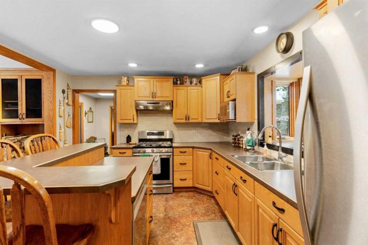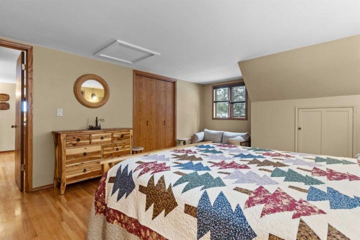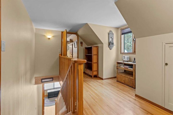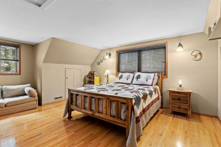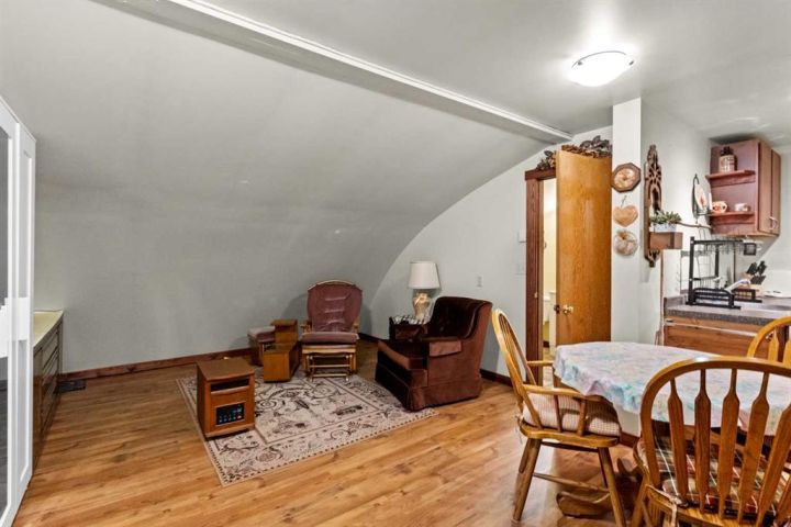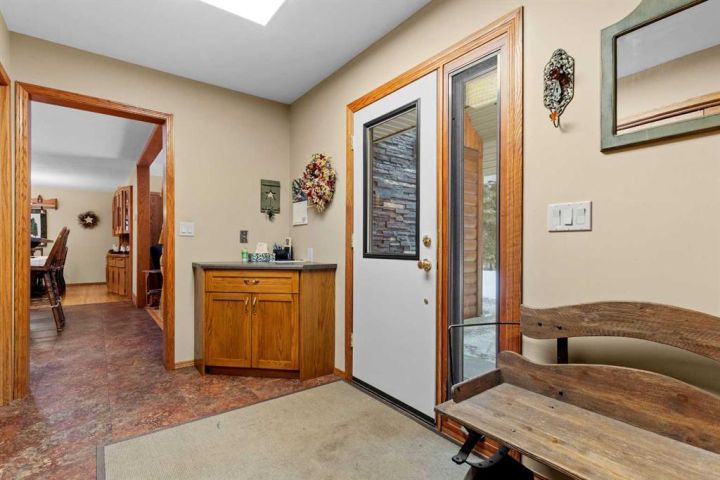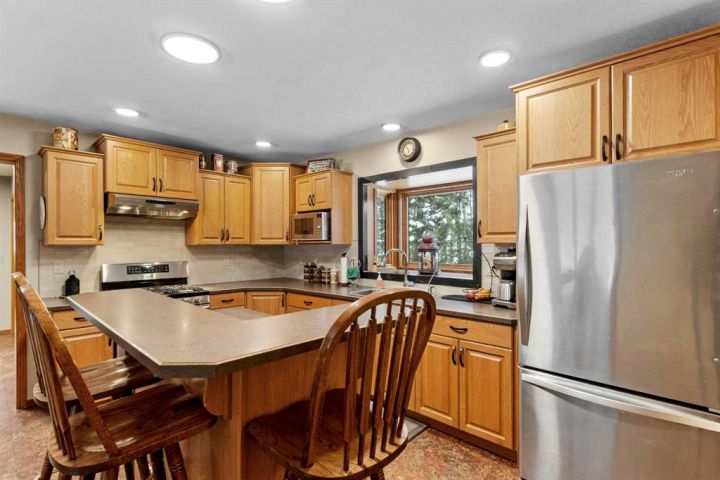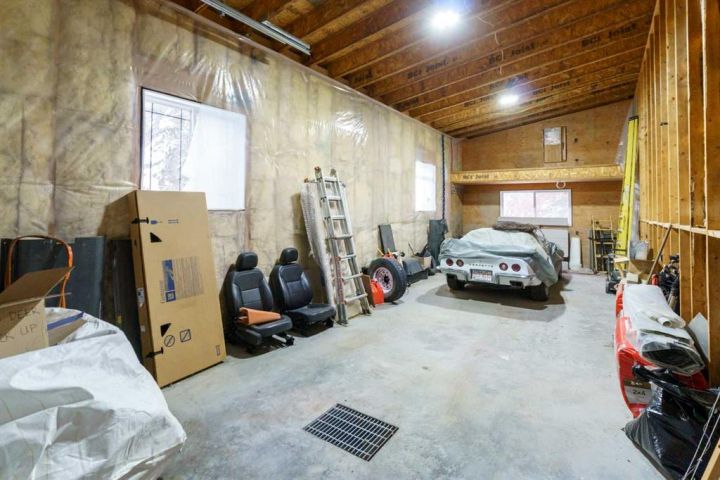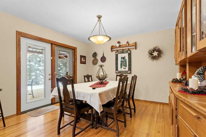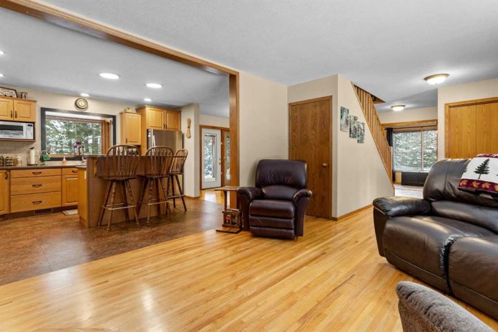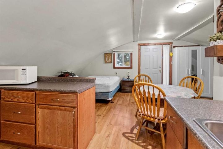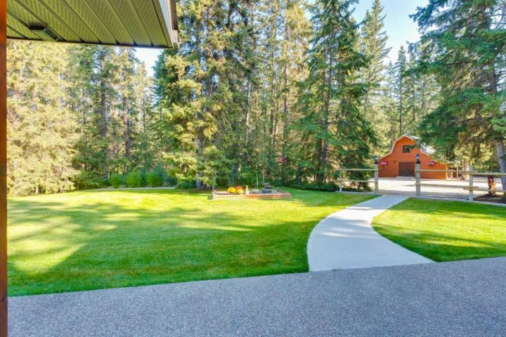 Welcome to your very own PRIVATE RETREAT! Offering 2,400+ Sq Ft of developed space in this 1.5 story home with 4 bedrooms & 3 Bathrooms! This inviting, lodge-style home is tucked among towering evergreens and wrapped in picture perfect tranquility. The exterior showcases warm half log siding, a striking stone chimney, and charming dormer windows, all framed by pristine forest views. There is an expansive rear concrete patio and this property is LANDSCAPED and WELL MAINTAINED. The main floor consists of beautiful HARDWOOD FLOORS and a wing design with the primary bedrooms and 4-piece ENSUITE on one side and another bedroom, 3-piece bathroom and family/rec room on the opposite side. Connecting the two is a spacious kitchen with center ISLAND, SS appliances and plenty of drawers, cabinetry and counter space. The kitchen is open to the cozy dining room and comfortable living space. Features: MAIN FLOOR LAUNDRY, plenty of STORAGE spaces and 3 FIREPLACES (2 wood burning & 1 gas in the primary ensuite). Upstairs houses 2 generously sized bedrooms, a storage/flex room and a 4-piece bathroom. The crawl space houses the utility components and offers even more storage. Outside you will find immaculately maintained landscape and a dedicated firepit area & GARDEN! The DETACHED GARAGE/SHOP was added onto and provides ample storage, parking, workshop space and is complete with 2-piece bathroom for added convenience. The STUDIO STYLE SUITE (Illegal, but County knows the suite is there) has an everything you need including a 3-piece bathroom. Great for guests accommodation! Great location just off pavement and just 15 minutes to Glennifer Lake and under 20 minutes to Bowden! Wheelchair accessible.