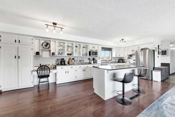 Set on 5.65 acres and surrounded by mature trees, the property embraces country living with pure privacy as its surrounded with nature. The unique bungalow home has a functional, open-concept layout with three bedrooms on the main level .The main floor is bright and welcoming with large windows that bring in beautiful natural light. The kitchen has white country-chic cabinetry, an island with great workspace, and a seamless flow into the dining and living areas. Just off the kitchen is a spacious family room with 10’ ceilings and a wood-burning fireplace that adds warmth and character to the home. The primary bedroom includes a walk-in closet and ensuite for convenience. The lower level is fully finished with additional bedrooms, generous storage, and a comfortable rec space designed to work for any lifestyle. The two additional rooms downstairs, a full bathroom, laundry plus a den giving you the flexibility for family, guests, a home office, or a gym the opportunities are endless. The house was moved onto the basement in 2007, with exterior updates including new siding and shingles completed in 2010 and a newer well. Outside, you’ll appreciate the detached garage, newer well, and the quiet, private setting that makes acreage living so appealing. Located just minutes from Lloyd and within the Lloyd school division, this property offers the ideal balance of privacy, space, and proximity. It’s move-in ready with a layout that supports both daily living and long-term growth. Dont miss out on this well curated sought after acreage in Northminster subdivision.
