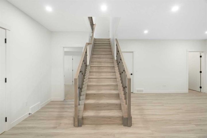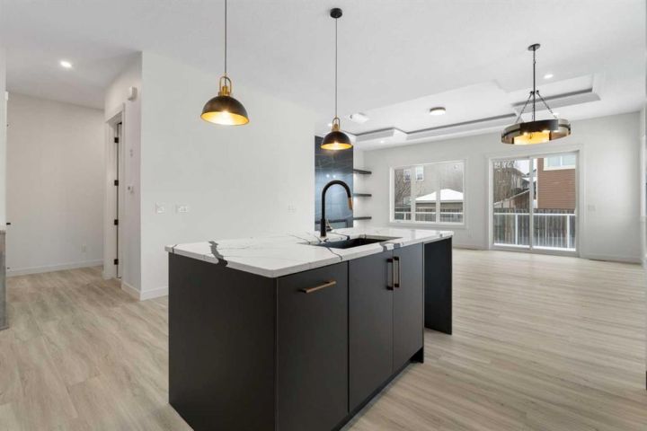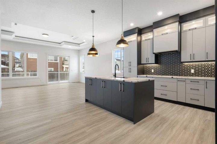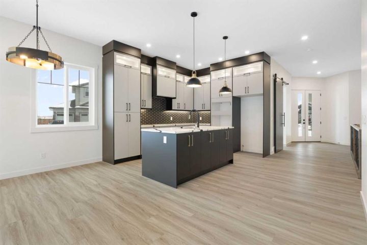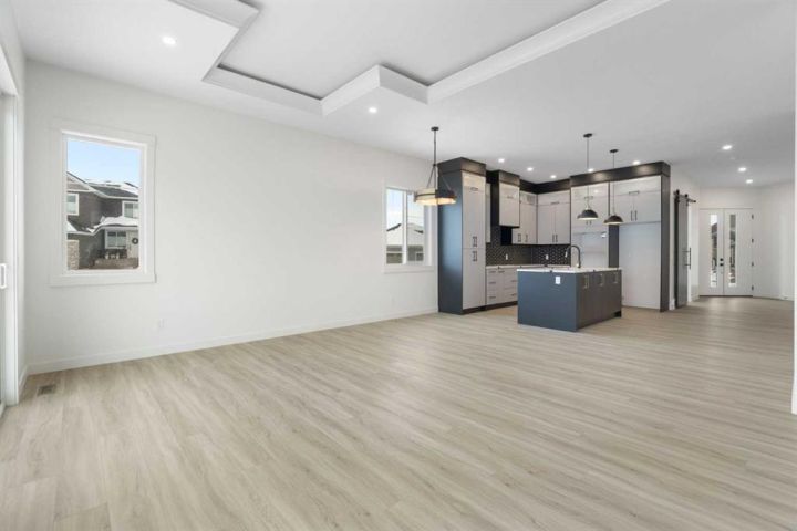 ELIGIBLE FOR FIRST HOME BUYERS GST REBATE! Experience the warmth and comfort of this delightful move-in-ready bungalow situated on a corner lot, in the friendly Lakes Estates community of Strathmore, just a quick 30-minute drive from Calgary. Spanning 3,310 Sq. Ft. of finished space, with a TRIPLE GARAGE, this brand-new home beautifully combines cozy design, thoughtful upgrades, and great value. The heart of the home is the inviting kitchen, complete with stylish gun metal stainless steel appliances, lovely quartz countertops, custom cabinetry, and a spacious island that’s perfect for family meals and gatherings. The open-concept main floor is filled with character, showcasing high ceilings, warm luxury vinyl plank flooring, and large windows that let in an abundance of natural light. With three comfortable bedrooms and two bathrooms on the main floor, plus an additional two bedrooms and two baths in the fully finished basement, this home is perfect for hosting friends, family, or guests. The cozy basement is an entertainer’s dream, featuring a wet bar, a versatile theatre/flex room, and a dedicated space for a home gym, all designed for relaxation and enjoyment. Step outside to the welcoming west-facing backyard, where you’ll find a full-width deck ideal for enjoying peaceful evenings and sunset barbecues. The tranquil pond views across the street add a touch of serenity to your outdoor space. Lakes Estates is a quiet and family-friendly neighborhood, offering plenty of green spaces and walking paths, along with easy access to Highway 1. Enjoy a smoother commute from Strathmore to Calgary, avoiding the busy city traffic.