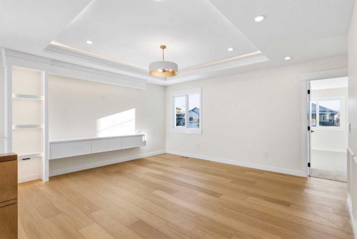 Experience grand-scale living at 343 Waterford Grove in the upscale community of Waterford. Lakeside living in Chestermere and a community designed for activity, you’re close to 8 parks and green spaces, three storm ponds, three school sites, and two neighbourhood centres. Enjoy it all without sacrificing proximity to Calgary for work. You’ll never run out of activities to enjoy with your family. This brand-new 3,152 sq. ft. estate home is meticulously designed for large families and multi-generational living, blending high-end elegance with practical design. The home totals just under 4,500 sq. ft. of potential living space, including the undeveloped basement, you’ll be able to create the space you need. Whether that’s a suite to generate additional income or the dream basement your family has always wanted. Upon entry, you are greeted by luxury wide-plank flooring and a breathtaking foyer sure to impress your future guests. The living room is open to above with grand ceilings, anchored by a gas fireplace. The chef’s kitchen is a true showstopper, featuring a massive island, built-in appliances (package to be selected and installed by the builder), and a fully ventilated spice kitchen. The unique layout is ideal for generational living, offering a main-floor second primary suite with a full ensuite bath, thoughtfully tucked away from the main living and kitchen areas. Perfect for aging parents or guests seeking privacy. Heading upstairs, you’ll notice motion-detection smart lighting on every step, adding a modern touch of safety and style. You’ll find four additional bedrooms, and three full bathrooms. The true primary retreat impresses with a soaking tub, dual vanities, and a custom glass shower. Two of the bedrooms share an adjoining bathroom, with another full bath conveniently located for guests off the bonus room. This home truly has it all. To top it off, the lot features an undeveloped walkout basement, a triple-car garage, and a location just steps from Waterford’s parks, storm ponds, and pathways. Schedule your tour today.