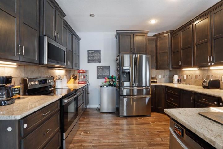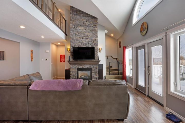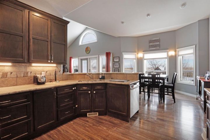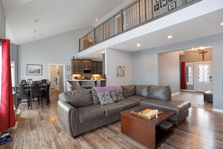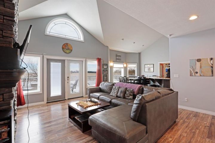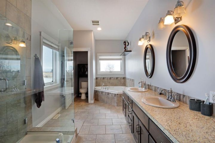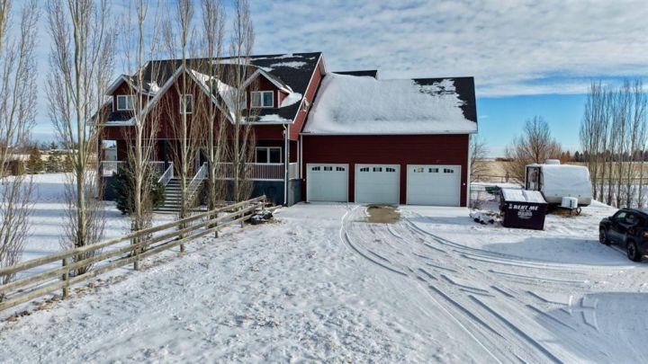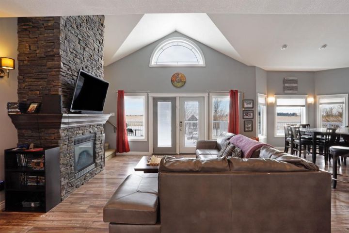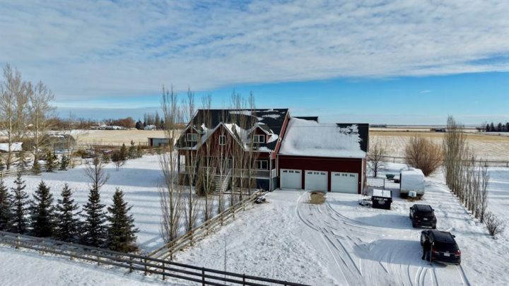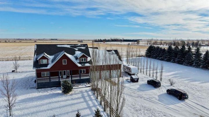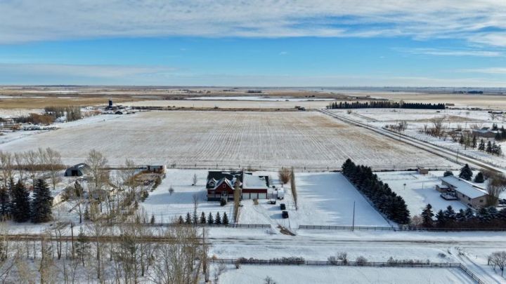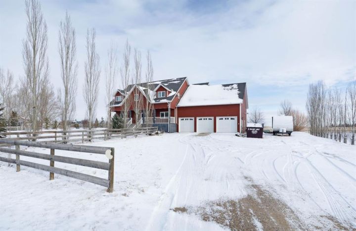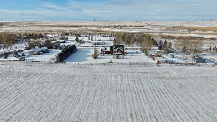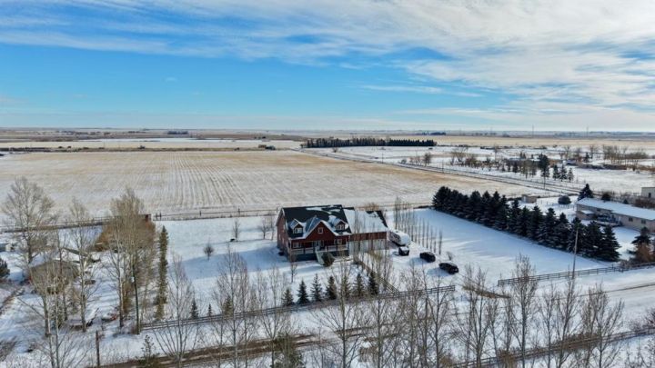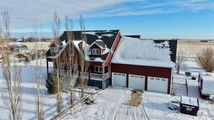 Located in the desirable Mortensen subdivision just six kilometres south of Brooks and minutes from Lake Newell, this property offers a standout blend of space, comfort and convenience. Surrounded by peaceful prairie views, the area features a nearby canal and a trout pond, creating a calm and family friendly atmosphere on a beautiful 1.66 acre parcel. This bright and inviting one and a half storey home features an attached heated triple car garage and a wonderfully designed main floor that feels open the moment you step inside. The spacious entry with its skylight sets the tone, leading into a sun filled layout with vaulted ceilings that elevate the great room. A striking floor to ceiling gas fireplace adds warmth and character, while the kitchen and dining area overlook the backyard and showcase granite countertops, espresso cabinetry, an eat up island, a walk in pantry and convenient main floor laundry just off the garage. The primary suite is located on the main level and offers a generous five piece ensuite and walk in closet, creating a relaxing retreat. A second bedroom on this floor is currently set up as an office. The full width west facing front porch is made for evening sunsets and quiet moments outside.The second floor continues to impress with two spacious bedrooms, excellent storage and a shared Jack and Jill bathroom, each with its own vanity area. This level overlooks the great room below, giving the entire space an open, airy and connected feel. The basement is built for fun and unforgettable nights in. The spacious family room comes complete with a pool table that is included, making it instantly ready for game nights and gatherings. A dedicated media or movie room brings the theatre experience home, and this level also features a bedroom, a full four piece bathroom and a utility room. There’s even enough room to create a second bedroom if you need more space. Step outside and enjoy everything acreage living has to offer. A large deck overlooks the beautiful backyard and side yard, perfect for relaxing, hosting or watching the kids play. The property includes underground sprinklers, air conditioning, a natural gas BBQ line and a great play set. With open views of both sunrise and sunset, every day feels special. There is also tons of parking and RV hookups for all your toys and guests. This is acreage living at its best in a fantastic subdivision just minutes from town.
