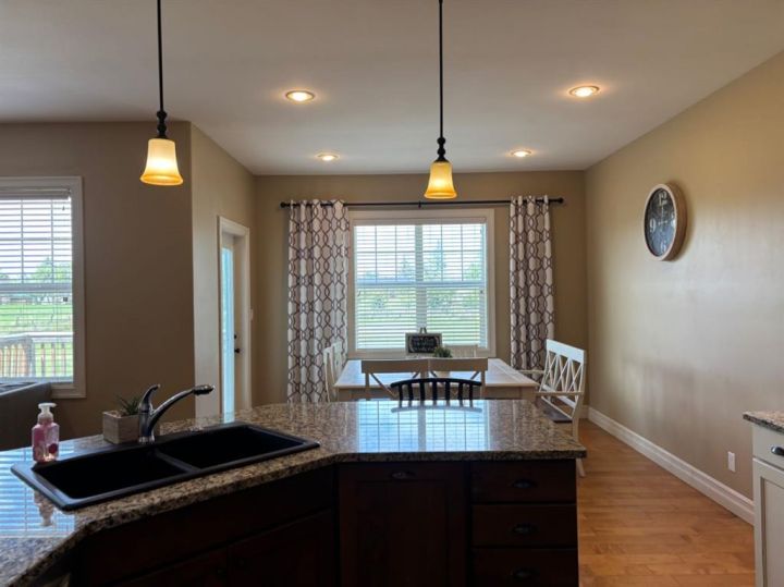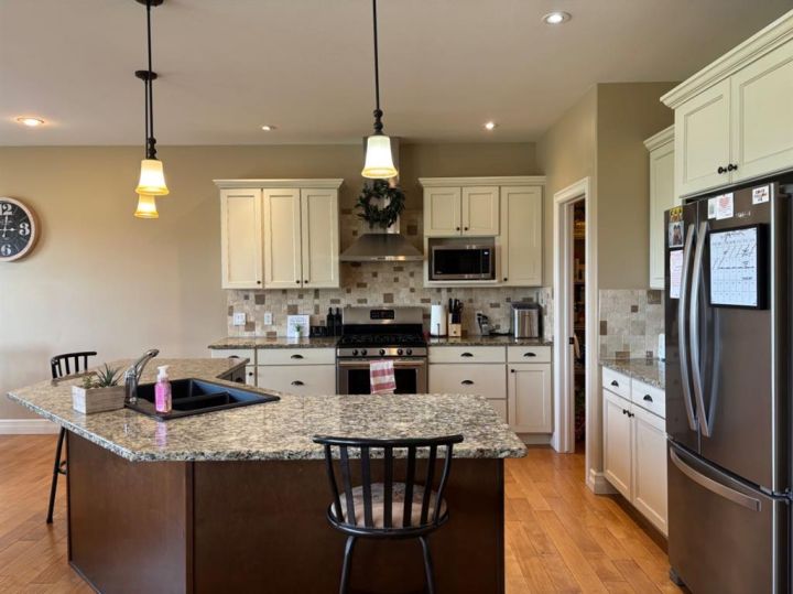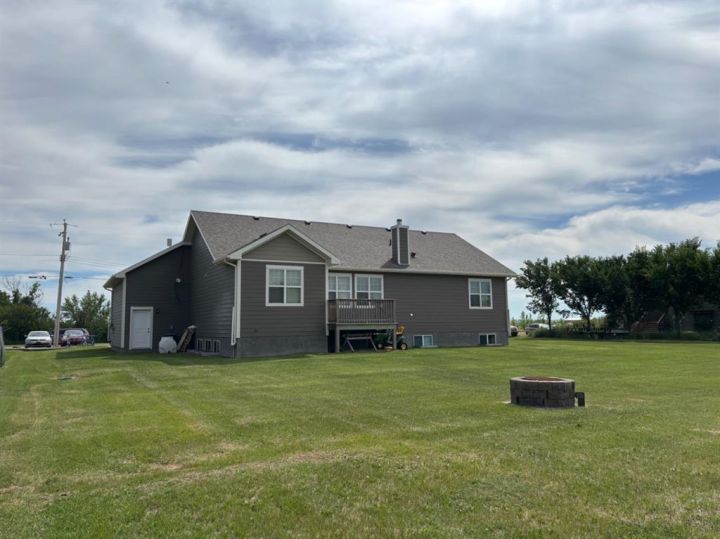 A Beautiful Family Home in the village of Stirling! This custom built home features 9’ ceilings up and down, a large tiled mud room shared by both the front entrance and the garage, a MASSIVE pantry, a wood-burning fireplace that takes up to 30” logs and can pump heat down into the basement, a built-in granite computer desk in the living room, a conveniently placed 3 piece bathroom from the garage and a laundry room just off the kitchen, a large downstairs family room great for teenage get-togethers or family gatherings, a natural gas heated garage with sturdy built-in storage shelves, a perfect front porch that faces southwest and a view of Chief Mountain and the Rockies, and so much more! With 3 bedrooms up and 4 bedrooms down, an open living–kitchen–dining area, and a large front and back yard to enjoy, this home is perfect for a family looking to enjoy the Community of Stirling. Come check it out!