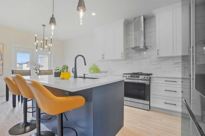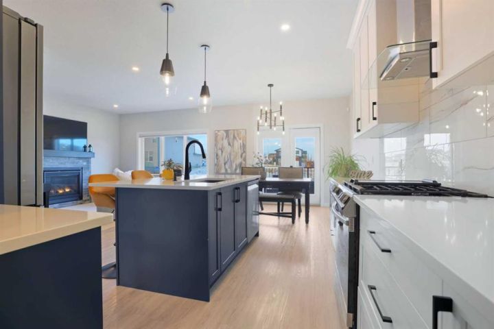 Welcome to 30 Palmer Close, an immaculate, nearly new home crafted with elevated finishes and thoughtful upgrades throughout. The main floor showcases a stunning chef-inspired kitchen complete with quartz countertops, cabinetry to the ceiling, a gas range, and tile carried to the ceiling for a polished, designer look. The living room centers around a beautiful, cultured stone gas fireplace, creating an inviting atmosphere for both everyday living and upscale entertaining.