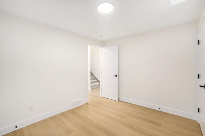 The fully developed walkout basement continues the high-end feel with 9-ft ceilings, luxury vinyl plank flooring, and abundant natural light. A generous family room transitions to a 10-ft wet bar with quartz counters, tile backsplash, under-cabinet lighting, custom cabinetry, and built-in wine storage—an entertainer’s dream. Two bright bedrooms, a full four-piece bath, mechanical room, and storage complete the level. Step outside to a covered concrete patio and landscaped yard with chain-link fencing on the park side and wood privacy fencing along the neighbour’s lot.