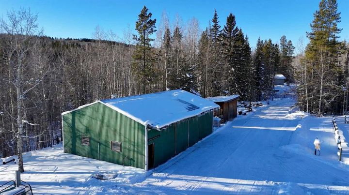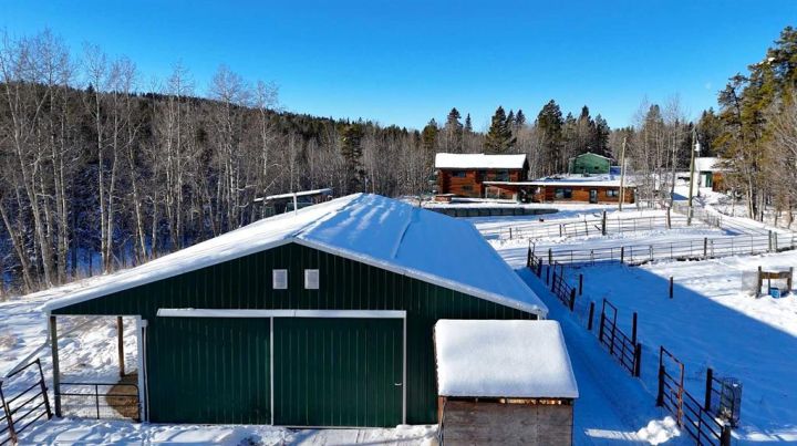 Set on 157 private acres in Mountain View County, just minutes from Water Valley, this remarkable country estate offers a stunning cedar log home, quality outbuildings, productive hay land, and the year-round beauty of Big Prairie Creek meandering through the property. An attractive, winding driveway leads to a secluded homestead surrounded by willow, mature spruce, and poplar—an ideal country escape with outdoor opportunities in every direction.