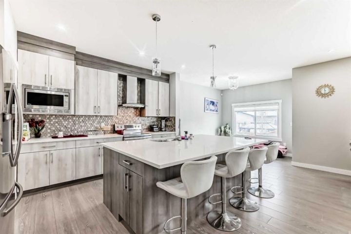 Welcome to this charming 2-Storey home which is conveniently located in the highly sought-after community of Baysprings. This stunning 6-bedroom home on a quiet street boasts of over 3000 square feet of developed space. The moment you step through the front door you will be amazed by the open-concept layout of the main level and the large windows that allows for tons of natural lighting. The main floor features a bright and large living room with a cozy fireplace, a good size office, an ultra modern kitchen with ample cabinetry, stainless steel appliances & a large kitchen island, a large pantry and a great size breakfast nook overlooking the deck & fence back yard. A two-piece bathroom completes this main level.