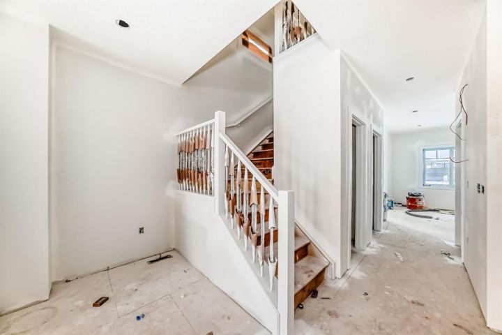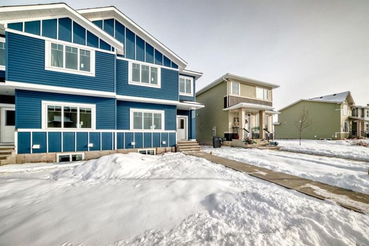 Welcome to this spacious and thoughtfully designed duplex in the charming town of Crossfield, Alberta, offering over 1,700 square feet of comfortable living space—perfect for growing families, professionals, or those seeking flexible work-from-home options. The main floor features a bright open-concept layout that seamlessly connects the living room, kitchen, and dining area, creating an ideal space for everyday living and entertaining. A separate family room provides additional space to relax or gather, while a main-floor bedroom—easily used as a home office or guest room—adds excellent versatility. A full bathroom completes the main level. Upstairs, you’ll find a well-appointed primary bedroom retreat complete with a walk-in closet and private ensuite bathroom. The upper level also includes two additional bedrooms, another full bathroom, a convenient laundry area, and a bonus room—perfect for a playroom, media space, or second living area. Located in the welcoming community of Crossfield, this duplex offers small-town charm with easy access to amenities and commuter routes. A fantastic opportunity to enjoy space, comfort, and functionality.