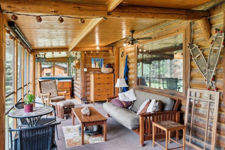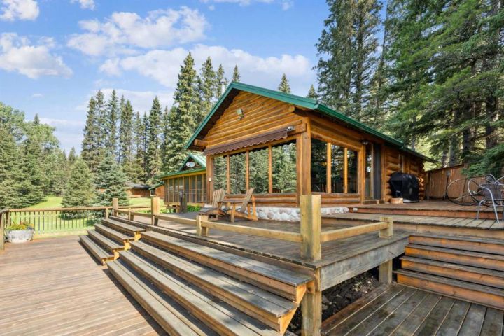There is a phenomenon in small towns, where certain places grow along with the community and come to define them. This historic property “Lazybones”, with its osteographic sign, has been a point of reference and directional guide for generations. Much like the hamlet of Bragg Creek itself, the original small cabin has grown and changed into something truly remarkable, all the while remaining a unique refuge from the bustling world outside. This 1.33 acre property has direct access to the Elbow River but sits high enough above to provide beautiful panoramas and free you from high water worries. There are two separate titled lots, one of which could be sold, or a second residence built. The home itself is all about views and more views. The kitchen and dining area sit above a sunroom with windows on 3 sides and a cosy fire place for winter; outside is a magnificent two-tiered deck. Both with an incredible vista of the river and foothills beyond. Prefer your nature one step removed? The incredible screened in porch with hot tub is a haven from sun and bugs while still offering breezes and the calming burble of the river. The rolling expansive lawn calls out for evenings of croquet, frisbee golf, or winter sledding. There is so much potential here, from redevelopment, to a storied summer home, or a weekend getaway only 30 minutes from Calgary and walking distance to the charming shops and restaurants of downtown Bragg Creek. You’ve always wondering what secret the “lazy” bones were guarding…don’t miss the opportunity to find out.