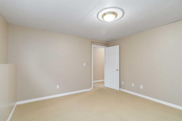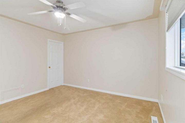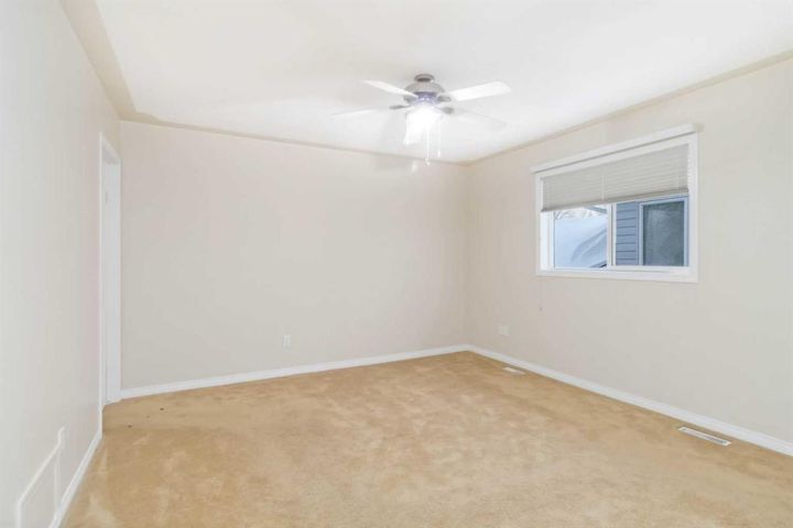 The kitchen offers oak cabinetry, a large window overlooking the backyard, and a convenient sit-up island with added storage; ideal for the family chef and helpers alike. Also on the main floor is the generously sized primary bedroom, complete with a walk-in closet and a full 4-piece ensuite featuring a jetted tub. Two additional bedrooms with large backyard-facing windows complete the upper level.