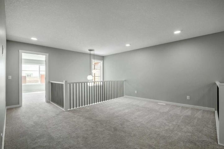 The Amari seamlessly blends form and function, making it an ideal place to call home. Just off the open-to-above foyer, you're greeted by a full bathroom and bedroom located on the main floor. The rest of the main level opens up to reveal a central kitchen, and a dinette and great room at the rear of the home. Convenience is plentiful thanks to the walk-through pantry and mudroom just off the double car garage. Upstairs, you'll find a large central bonus room, laundry room, two secondary bedrooms, full bathroom, and a primary bedroom with a roomy ensuite and walk-in closet. Photos are representative.